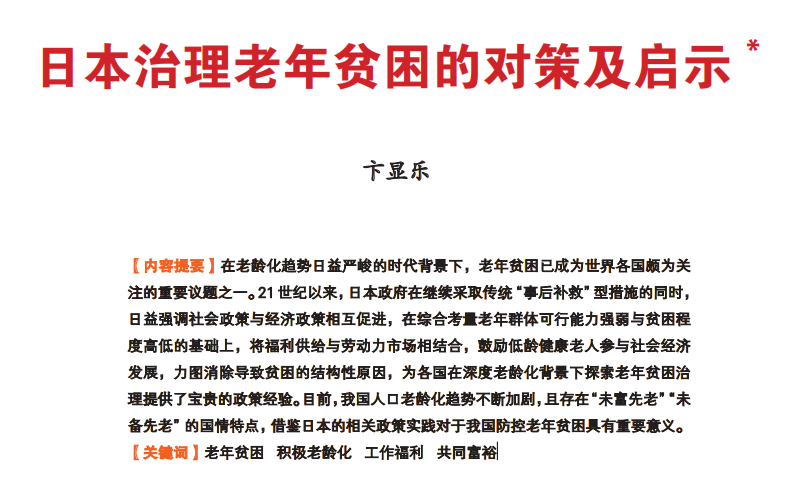 卞显乐:日本治理老年贫困的对策及启示