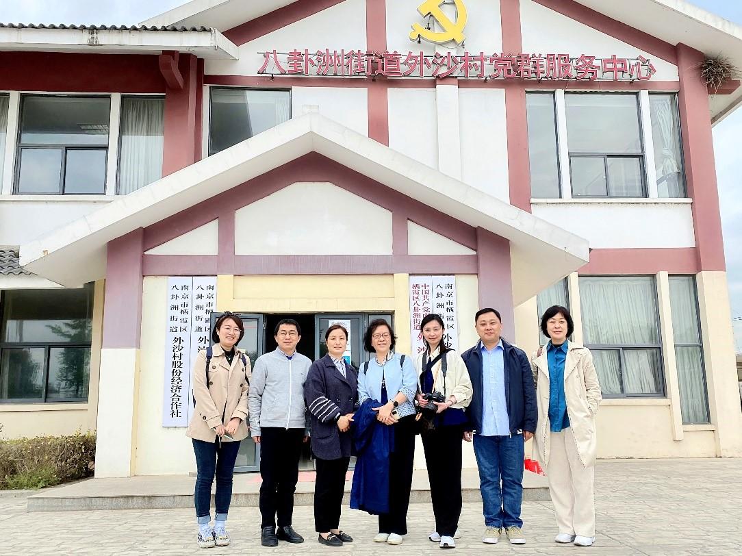 之后,调研组走访位于南京八卦洲街道的外沙村社区。外沙村位于“中国芦蒿第一乡”的八卦洲北部,北与波涛滚滚的长江相邻,西有南京长江第二大桥穿境而过,地理位置得天独厚。外沙村村民3476人,以发展现代农业和乡村旅游业为主。外沙村近些年在探索本地乡村振兴上进行了多方面的尝试,如草莓种植园和百合育种大棚都是附近远近闻名的种植基地,未来会与乡村旅游、网络直播等多种方式开拓市场,服务本地发展。